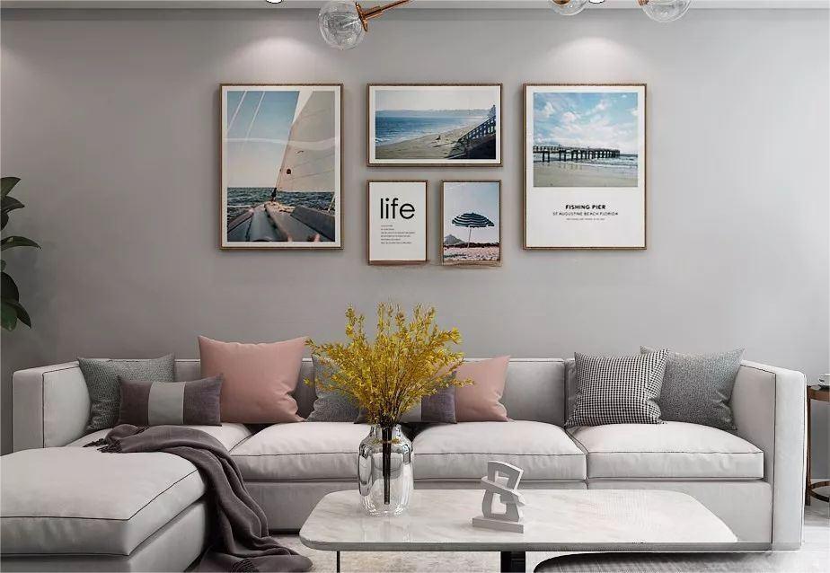 在选择画面的内容和面积也要多加谨慎,不是涂满色彩的画才是好的作品,有时候留白也是另外一种境界。另外画框的材质,尺寸和形式也影响着整个空间的风格,比如目前流行的简约风格采用无边框的画框来装裱,这样显得自然大方。